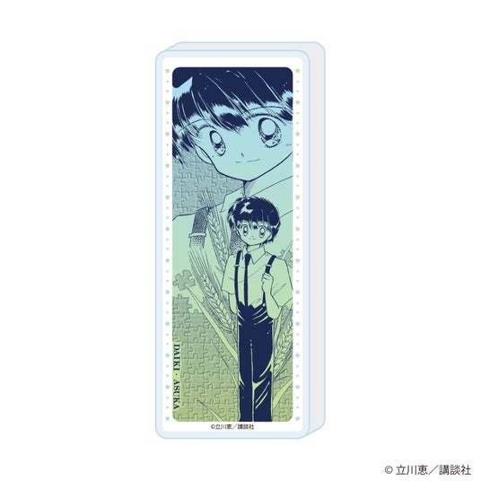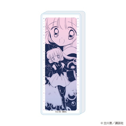 セイント・テールと飛鳥大貴を描いた2種類のコレクションスタンドは、大きさおよそ縦12cm×横5cm。約1cmの厚みもあるので、そのまま立てて飾ることができます。