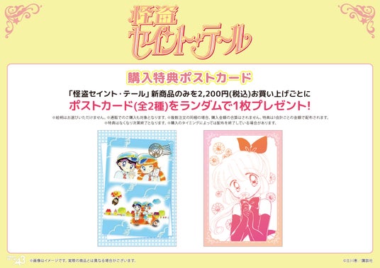 『怪盗セイント・テール』の新作グッズのみを2,200円(税込)お買い上げごとに、ポストカード(全2種)をランダムで1枚プレゼントします。