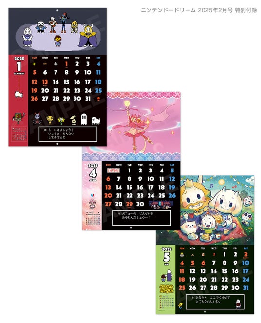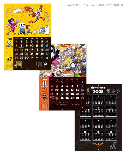 ゲームの名シーンを各月で楽しめる特製カレンダーです。3名のイラストレーターによる描き下ろしイラストも収録。2025年は『UNDERTALE』を日常に添えてお楽しみください。
