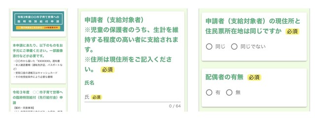 2021年11月19日に閣議決定された「コロナ克服・新時代開拓のための経済対策」における「子育て世帯への臨時特別給付金」と「住民税非課税世帯等に対する臨時特別給付金」の申請業務について、LoGoフォームを活用し、オンラインでも申請できるようにしました。