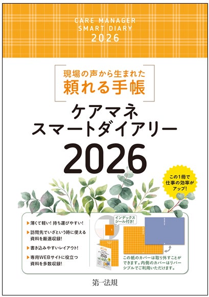 法律関連出版物、各種データベースを提供する第一法規株式会社(所在地:東京都港区、代表取締役社長:田中 英弥)は『ケアマネスマートダイアリー2026』を2025年9月1日に発刊いたしました。