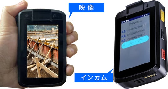 MOTウェアラブルカメラは、顔認証や映像、音声の複数名共有、通話アプリを起動させて内線・外線通話を行うことが可能です。