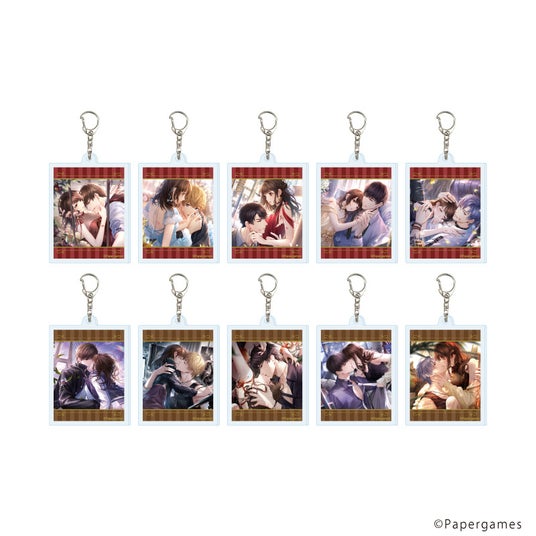 イベント「艶色の痕跡」「口づけに溺れ」の美麗イラストが、縦横最大6.5cmのアクリルキーホルダーに。