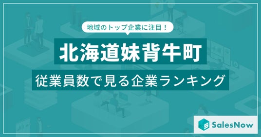 「誰もが活躍できる仕組みをつくる。」をミッションに掲げ、セールスチームの武器となるデータベース「SalesNow」を展開する株式会社SalesNow(本社:東京都渋谷区、代表取締役:村岡功規、以下「SalesNow」)は、国内540万社の企業情報を完全網羅した日本最大級のデータベース「SalesNow DB」より、北海道妹背牛町に本社を置く企業の従業員数ランキングを調査しました。