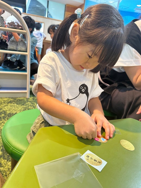 実施内容:墨田区生まれの葛飾北斎について学ぼう!小判に絵や文字を描いたり、シールを貼ってオリジナル小判を作成