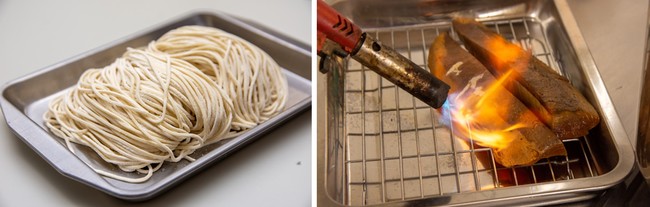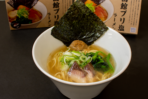 ブリを長時間茹で丁寧に抽出したブリのエキスと豚や魚介から出汁を取り透き通った清湯スープが特徴の函館塩ラーメンスープをかけ合わせたハイブリットスープは、あっさりしているがしっかりとコクを感じられるスープです。北海道産小麦100%を使用しのど越しがよくしっかりと歯ごたえがある特注麺の上に、ネギやほうれん草、海苔、北海道産のブリを使用したブリ節の粉末や、生のブリを醤油ベースのタレに漬け込んだ後に香ばしく炙ったブリチャーシューなど、北海道産にこだわったトッピングを用意しています。