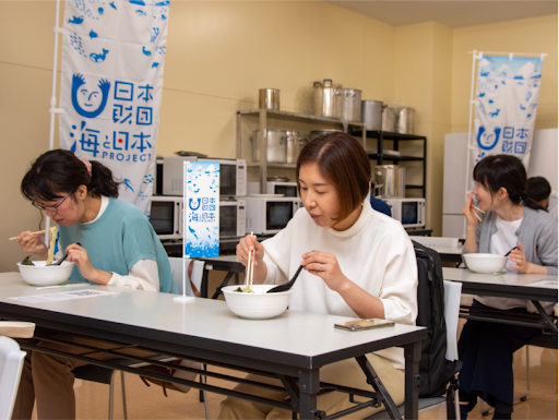 近年、地球温暖化や海洋環境の変化などの影響により、ブリの漁獲が急増し全国有数の水揚げ量を誇る北海道函館市。その一方、最近捕れ始めたということもあり、消費量は全国平均の半分程度で地域の食文化にはまだまだ定着していません。Blue Commons Japanは新たな食文化の定着を目指すべく、そのブリをふんだんに使った「函館ブリ塩ラーメン」を開発し、市や道の職員、市内の事業者を中心とした試食会を開催しました。参加者からはとても好評で「販売開始が待ち遠しい」などといった声が多く寄せられました。このラーメンは函館朝市 駅二市場内、7月18日(月)オープン予定のブリのアンテナショップにてローンチします。また、オープンに先立って乾麺を使用したお土産版ラーメンも6月25日(土)から市内の観光土産店で取り扱いが開始されます。