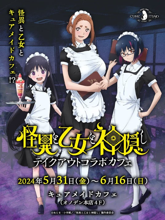 2024年5月31日(金)~6月16日(日)の期間、秋葉原キュアメイドカフェにてTVアニメ「怪異と乙女と神隠し」のテイクアウトコラボカフェが開催いたします。