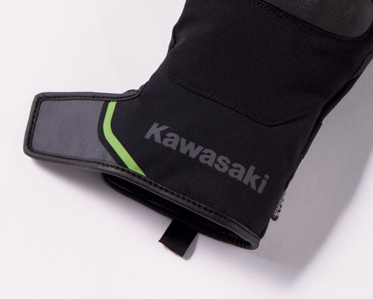 手首部分には「Kawasaki」ロゴ、中綿入りで保温性に優れています カラー:ブラック