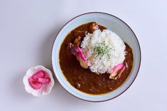とまらない恋華麗(カレー):1,200縁(税込)奥出雲薔薇園による新鮮なエディブルローズを散りばめた色鮮やかなカレーです。