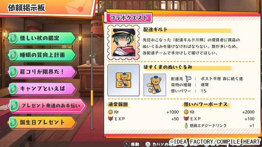 コラボアイテムはゲーム内に登場し、依頼を受けて荷物として届けたりアイテムとして使用したりできます。