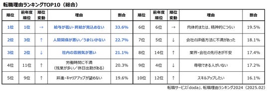 転職サービスdoda「転職理由ランキング」< https://doda.jp/guide/reason/ >