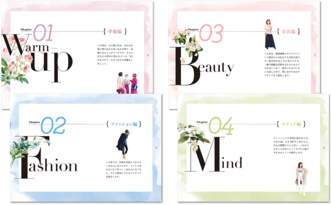綺麗になるための秘訣について、準備編・ファッション編・美容編・マインド編の全4章でまとめました。