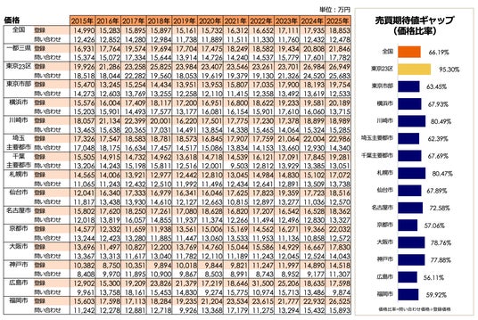 【一都三県・主要都市別】23区は築古でも価格維持、関西・地方都市は築年による下落幅大。