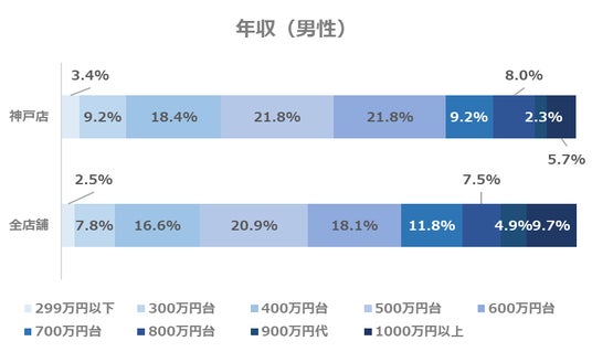 ・男性の年収、500万円台・600万台の割合は全店舗よりも多い