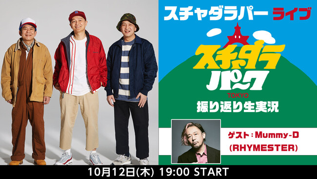 番組にはスチャダラパーとMummy-D(RHYMESTER)が生出演し、視聴者と一緒にライブ映像を振り返りながら「スチャダラパーク2022」の裏話や、まったく関係ない話などをたっぷり語っていきます。
