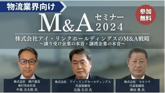 日本最大級の物流コンサルティングファーム 船井総研ロジ株式会社(本社:大阪市中央区、代表:橋本直行、以下「船井総研ロジ」)は、2024年8月26日(月)~29日(木)に開催されるオンラインセミナー『物流業界向けM&Aセミナー2024』にて、船井総研ロジ 梶谷 昂史が講演します。
