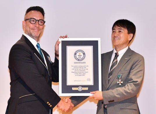 公式認定証を授与された株式会社メガハウスの佐藤明宏社長は、「ギネス世界記録として認定いただきましたことが、本当に嬉しいです。こうして認定証を手にすると実感がわきます。まさに4年の間、製作に携わったスタッフと株式会社入曽精密様とのコラボレーション、情熱が生んだものです。この喜びを皆様と分かち合いたいです。ありがとうございます。」とコメントしました。
