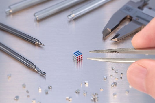 「究極最小ルービックキューブ -0.50cm 超精密金属製-」は、ギネス世界記録(TM)認定の最小のパズルキューブと同工程で製作された商品です。1辺の大きさが約0.50cm、本体の各マスが約 0.16cm×0.16cm ×0.16cmの世界最小の公式ルービックキューブで、通常の3×3の約1/1000サイズ(体積比)となっています。世界トップレベルの微細加工技術をもつ、株式会社入曽精密の技術協力の下、1/100mmサイズの高精度微細切削加工技術により、可動ができるよう切削した39個パーツを専用の器具を用いて成形し、最後は手作業で組み上げています。通常のルービックキューブと同じように実際に動かしてお楽しみいただける、最先端技術の全てを注ぎ込んだ究極の逸品となっております。
