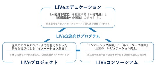 『LIVe』では、こうしたリベラルアーツの力によって参画企業とともに社会にイノベーションを生み出すことを目指し、新たに『LIVe企業向けプログラム』の提供を開始いたします。