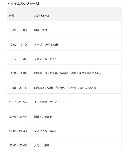 本イベントは、teratailユーザー同士の交流を目的としたオフラインMeetupイベントです。これまでオンライン上で質問や回答を通じて技術を磨き合ってきたteratailユーザーが、直接顔を合わせて交流できる特別なイベントです。当日は食事やドリンクを楽しみながら、エンジニア同士が気軽に語り合える場をご用意しています。