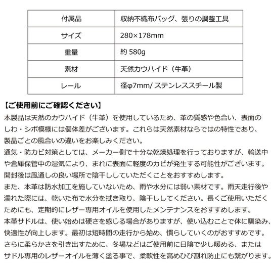 ●天然カウハイド使用、唯一無二の育てるサドル
