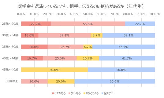 ・25歳~29歳の77.8%が「奨学金を返済していることを、相手に伝えるのに抵抗がある」