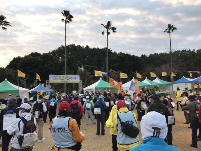本イベントは、参加者ご自身の体力に合わせて7つの距離コースから選び、楽しく歩くウォーキングイベントです。2日間合わせて約2,600人が参加し、穏やかな天候にも恵まれ指宿の美しい自然を思い思いに満喫されていました。当日は「ワタミの宅食」営業所スタッフおよび本部スタッフがブース展示を行い、お弁当の試食やお試しチケット・パンフレットの配布をさせていただきました。これからも、地域に根差し、食と健康に関わるイベントには積極的に参画を行ってまいります。