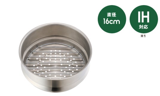 また、上下に分離ができるため、蒸し料理以外にも、フライパンや水切りザルなど1台で様々な使用方法が可能です。下鍋をフライパンや浅い鍋として、蓋はフライパンの蓋としても使用できるので、調理の幅も広がります。IHクッキングヒーターでの使用も可能なため、ご家庭での調理器具としても活躍します。