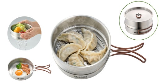 3WAYで幅広い調理に対応し、コンパクトに持ち運びや保管ができるクッカーセット「LOGOS アウトドア蒸し器」を、アウトドアライフでの様々な調理シーンにてぜひともご活用ください。