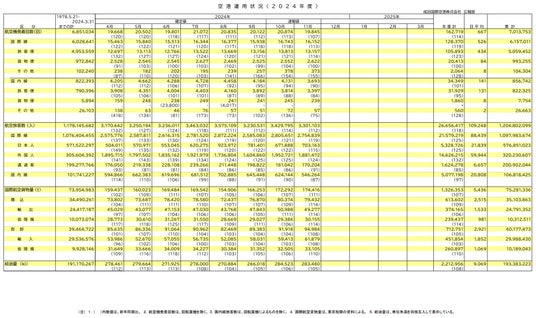 ⚫ 国際線旅客便発着回数は、韓国、香港等の近距離アジア線が好調で13,157回(19年同月 比89%)となりました。