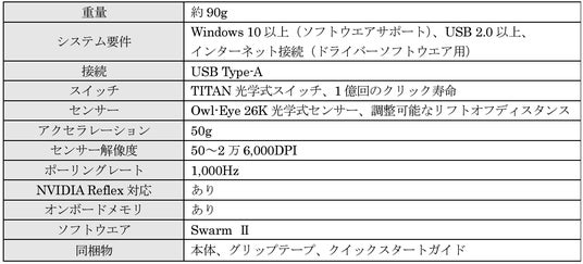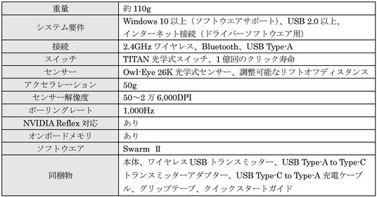 ・最大26K DPI、650IPS(16.5m/s)のOwl-Eyeセンサー