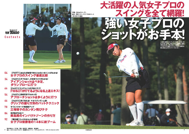 株式会社三栄(本社所在地:東京都新宿区、代表取締役社長:伊藤秀伸)は、2022年12月13日より『強い女子プロのショットがお手本!』を発売いたします。大活躍の人気女子プロのスイングを全て網羅。ドライバーからパターまでテクニックを詳細解説した一冊です。(三栄公式ウェブ:https://www.sun-a.com/magazine/detail.php?pid=12621)