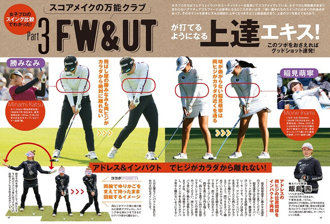 2022シーズンも女子プロは大人気。ツアーも大いに盛り上がった。なかでも注目は黄金世代の次の2000年生まれのミレニアム世代のプレーヤーたち。さらに中盤からさらに若い19歳の選手が2週連続優勝するなど、フレッシュな若手の活躍が目立つ。可愛いのはもちろんだが、優勝する力もあり、強いスイングの持ち主たちといえる。そんな人気女子プロのドライバーショットからFW&UT,アイアンショット、アプローチ、そしてパッティングまで、スイングを分析して送るレッスンムック。