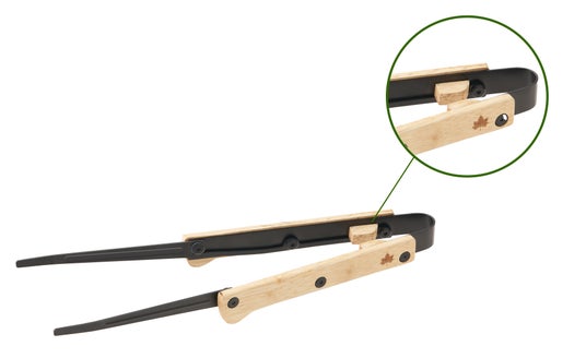 トングとしての使い方はもちろん、先端が細いため、菜箸のように食材の盛り付けや取り分けもしやすく、そのままお箸としてもご使用いただけます。また、トングの内側に突起があるため復元力があり、定期的に開き直すことなく使い続けられます。
