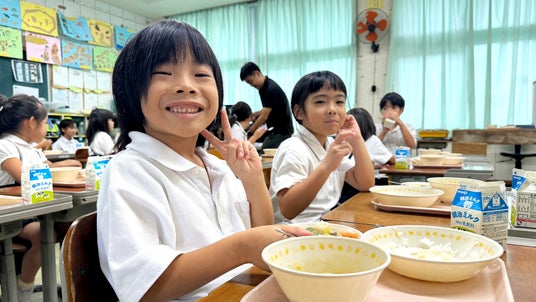 初の試みとなる今回の取り組みは、沖縄市立学校給食センターが食育の一環として、子どもたちが好き嫌いなくご飯を食べ、元気な体作りのきっかけとなるようにという目的で実施しました。併せて