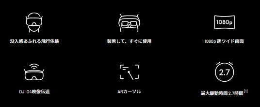 ・1080p超ワイド画面54°の優れたFOVと1080p 60Hzの全面LCDを搭載しています。目の前で繰り広げられるインパクトのある空中シーンを、めまいを最小限に抑えながら、驚異的な映像で楽しめます。