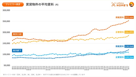 - 東京23区の掲載賃料は125,814円(前年同月比118.5%)で過去最高を更新