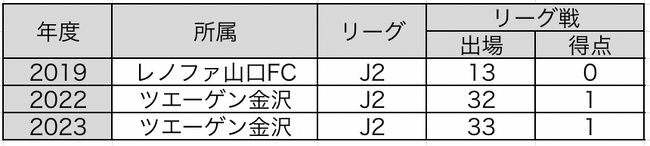 聖隷JFC - ジュビロ磐田U-18 - 流通経済大学 - 流経大ドラゴンズ龍ヶ崎 - レノファ山口FC - UDオリヴェイレンセ(ポルトガル) - ツエーゲン金沢