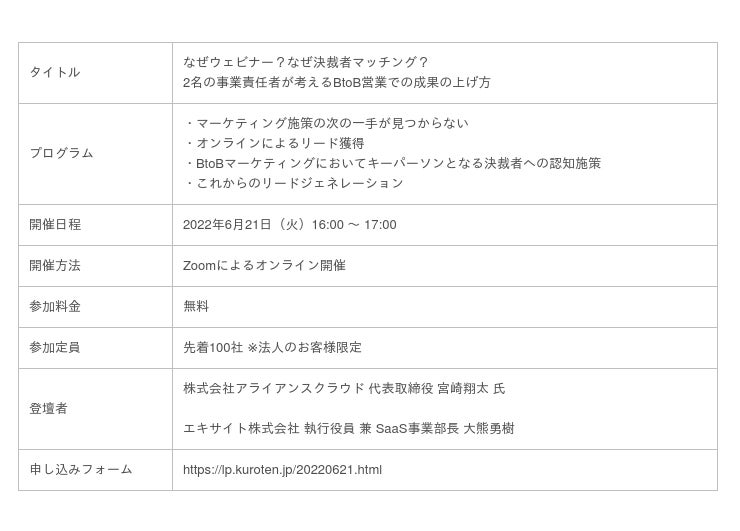 【お申し込みフォーム】https://lp.kuroten.jp/20220621.html