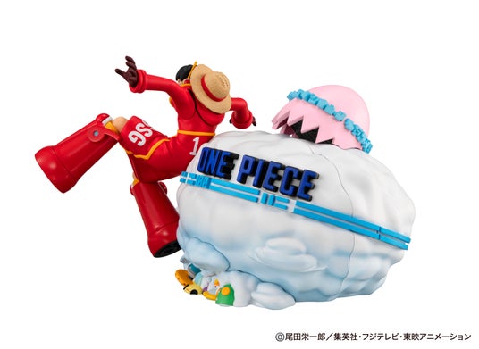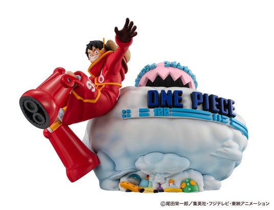 同商品は、未知の科学にあふれる未来島“エッグヘッド”を背景に、赤い研究服に身を包み、ホバー機能で空を飛んでいるようなルフィを再現しています。ジオラマ風かつ動きがあることで躍動感いっぱいの仕上がりとなっています。500玉を50枚以上貯められるので、夢に向かってルフィと一緒に楽しく貯金ができるアイテムになっています。