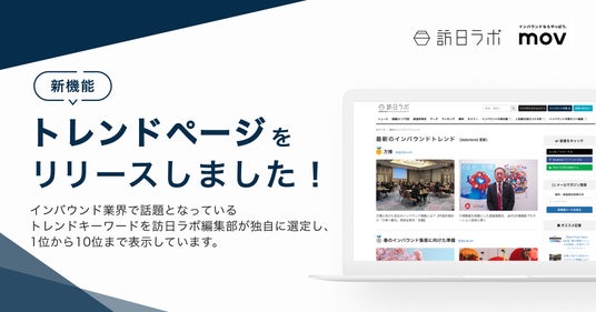 業界最大級のインバウンドビジネスメディア「訪日ラボ」及び AI店舗支援SaaS「口コミコム」を運営する株式会社mov(代表取締役:渡邊 誠、本社:東京都渋谷区、以下mov)は、「訪日ラボ」TOPページのリニューアルを実施いたしました。また、新機能として「トレンドページ」を追加しております。