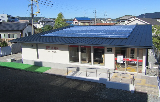 日本郵便株式会社(本社:東京都千代田区、代表取締役社長兼執行役員社長:衣川和秀)は、『JPビジョン2025』のもと、郵便局ネットワークを活用し、CLT建材や太陽光発電設備の設置による再生可能エネルギーの活用など、より環境に配慮した「+エコ郵便局(環境配慮型郵便局)」の開局などにより、地域のカーボンニュートラル化の推進に取り組んでいます。