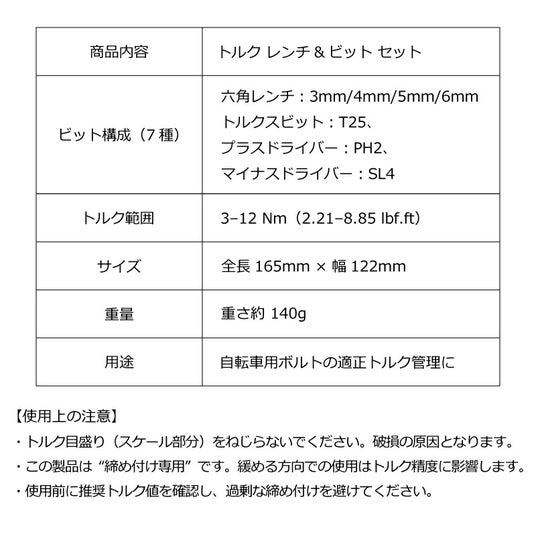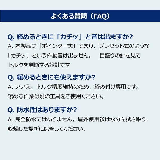 ・この製品は“締め付け専用”です。緩める方向での使用はトルク精度に影響します。