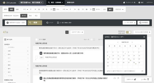 公布・施行の日付や期間から該当する法令を検索できる!