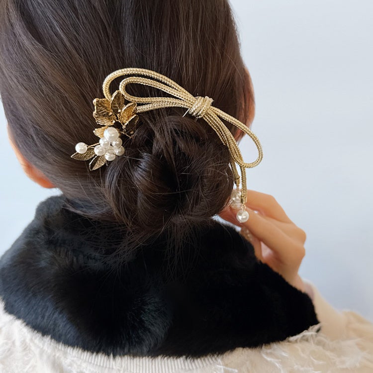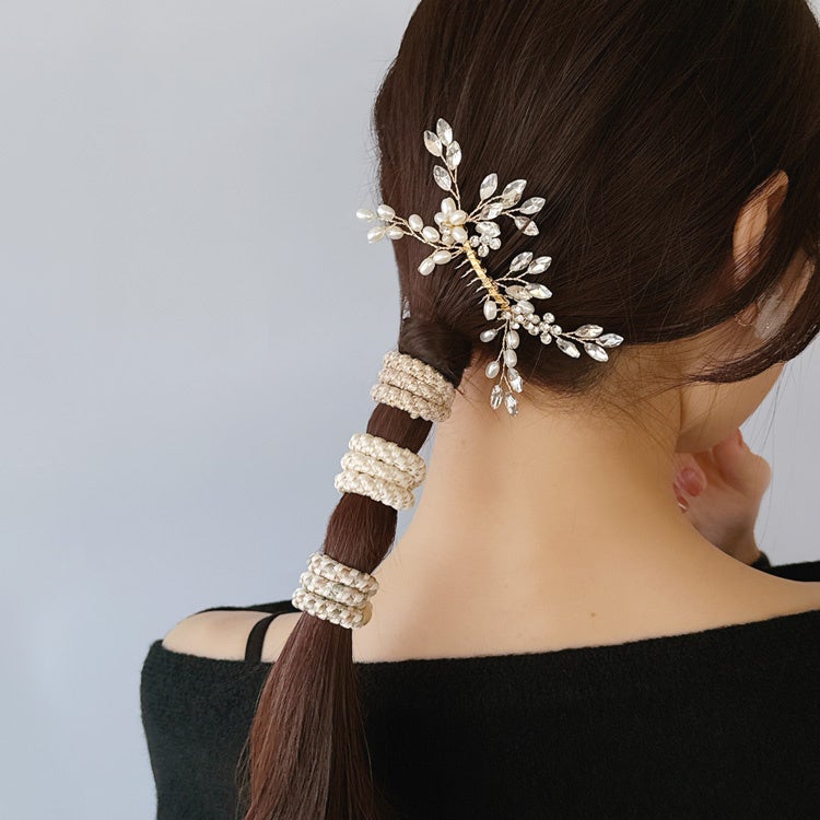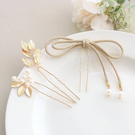 商品名:ヘッドドレス / 組紐×パールリーフ / 3pcs