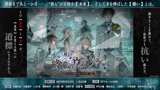 前回は約2年前の2023年7月2日(日)に開催し、初作(「終遠のヴィルシュ -ErroR:salvation-」)をベースにサブキャラクターの心の裡や、その裏側では何が起こっていたのか、という本編では見ることの出来なかった部分にフォーカスを当て、彼らの【 記憶(メモリー) 】を辿りながら、それぞれの【 終焉 】に至る【 絶望 】と【 救済 】の物語をお届けいたしました。