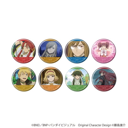 グラフアートスケッチを使用した、大きさ5.7cmの缶バッジ。顔まわりがアップのデザインなので、ルークやティアたちの力強い表情をじっくり堪能することができます!