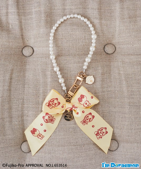 今回の一押しアイテムは「ドラえもん」、「ドラミ」とそれぞれが持つひみつ道具の刺繍を施したトートバッグです。ブランドらしくマットサテン素材を使用し上品な印象に仕上げました。また持ち手部分のDカンには、同時発売の「ドラえもん」、「ドラミ」のアートをプリントしたリボンと鈴のチャームがポイントのストラップを付けて気分にあわせてコーディネートをお楽しみいただけます。