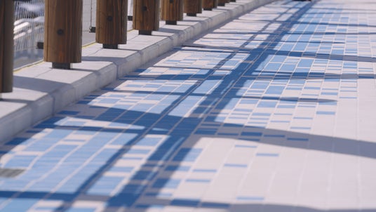 タイルは、ANAホールディングスと三井不動産のコーポレートカラーから着想を受けた青色と白色を組み合わせ、波打ち際のゆらぎを表現し、歩行者が水辺を身近に感じられるデザインになっています。また、橋の両脇には木仕上げの支柱と、網目状のフェンスを用い、海に並ぶ木杭と漁師網を表現しました。さらに、支柱の笠木内部には温かみのある照明を設け、連続した行燈の光が親しまれる運河沿いの夜景を創り出しています。橋から見渡すことのできる現在の運河の風景の中に、橋で表現したかつて漁師町だった羽田エリアの海辺の風景が重なり、まちとまち、そして過去から現在、さらに未来へとつなぐ橋となるようにという想いが込められています。